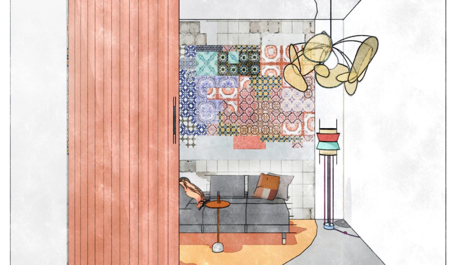 Il fondale intorno al divano potrà essere trattato con una carta da parati e l’area…